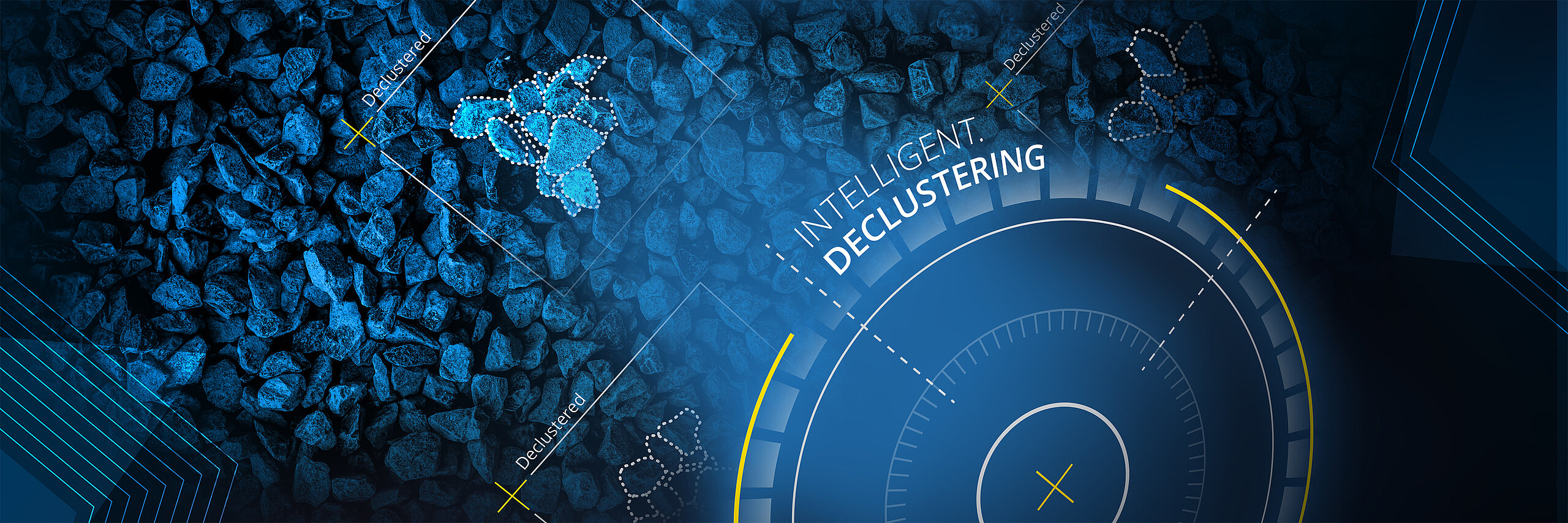 Com o Intelligent.Declustering da STEINERT, o software extrai e analisa cada rocha individualmente dentro do aglomerado, mesmo quando estão muito próximas entre si. Com a atualização do software, o sistema de separação passa a avaliar as partículas individualmente. Esse processo é chamado de "Declustering" e significa que as empresas de mineração podem operar os sistemas de separação com maior capacidade de processamento, alcançando níveis superiores de pureza e recuperação. Objetivos que antes eram mutuamente exclusivos agora se tornaram compatíveis.