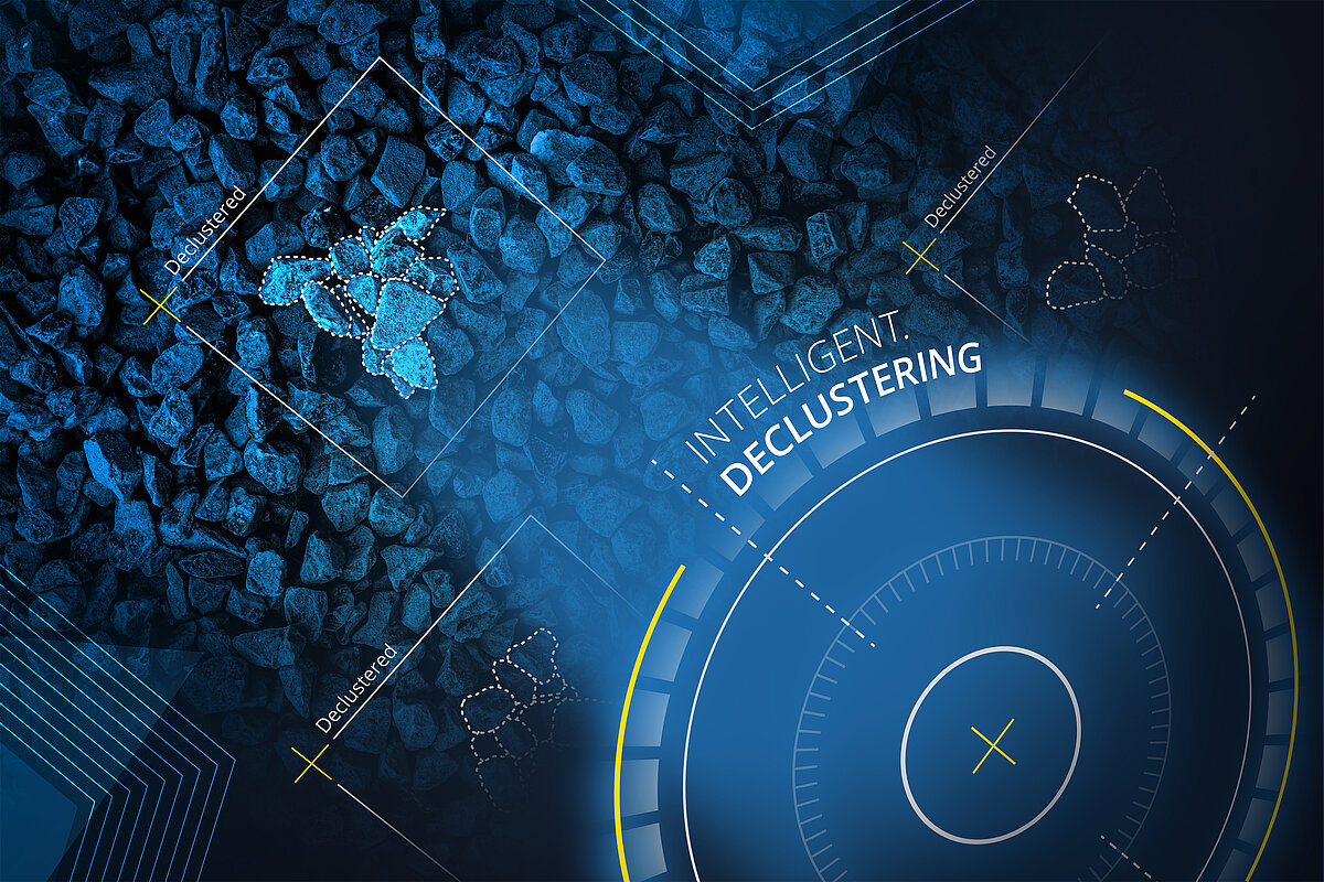 STEINERT bietet eine neue Lösung im Bereich der Datenauswertung an. Partikelsortiertechnologie analysiert in der Regel einzelne definierte Partikel auf dem Förderband und trifft entsprechende Entscheidungen. Wenn sich der Durchsatz erhöht, steigt auch die Wahrscheinlichkeit, dass nah zusammen liegende Objekte als ein einzelner Partikel identifiziert werden. Dies kann zu falschen Sortierentscheidungen führen, z. B. dass wertvolles Erz als minderwertiges Gestein oder minderwertiges Gestein als Wertstoff eingestuft wird. Beim Prozess der Erkennung von Golderz wird durch Declustering sichergestellt, dass die einzelnen Partikel für eine korrekte Klassifizierung separat erkannt werden. Diese Funktion verbessert einerseits die Genauigkeit und Effizienz des Sortiersystems und ermöglicht andererseits die Verarbeitung höherer Durchsätze. Mit Intelligent.Declustering von STEINERT extrahiert die Software die einzelnen Steine aus dem Cluster, selbst wenn die Partikel sehr dicht beieinander liegen, und analysiert sie. Der Vorteil dieses Prozesses besteht darin, dass nun Ziele, die sich zuvor gegenseitig ausgeschlossen haben, miteinander vereinbar sind. Außerdem ist es möglich, vorhandene Anlagen schnell und einfach nachzurüsten.