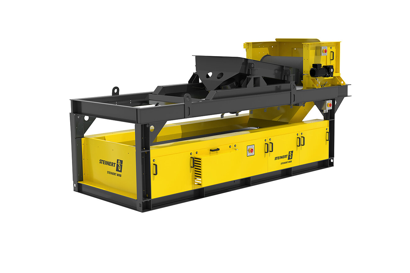 Con el STEINERT MRB alcanzará elevadas tasas de recuperación de metales férricos con granos de tamaño medio. Para ello, nuestro separador magnético de dos fases combina un tambor magnético de vaciado STEINERT MTP con una polea magnética STEINERT MSB ubicada debajo de la alimentación. Mientras que el primero genera chatarra de hierro aprovechable, en la segunda fase la polea magnética separa los componentes poco magnéticos superfluos s y que pueden influir negativamente en la calidad del proceso o en la calidad de los productos a separar.