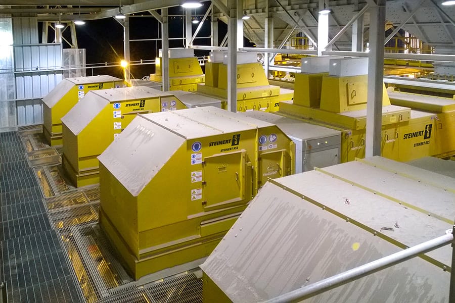 Four STEINERT KSS LXT sorting machines, each with a working width of 2 metres, were used to recover zinc, lead and silver ore residues from tailings. Material between 12 and 35 mm with very low ore concentrations could be converted by the sorting process into a product with substantially greater concentrations that could then be viably processed. Studies have demonstrated that sorting is the only possibility for viably exploiting the heaps profitably.